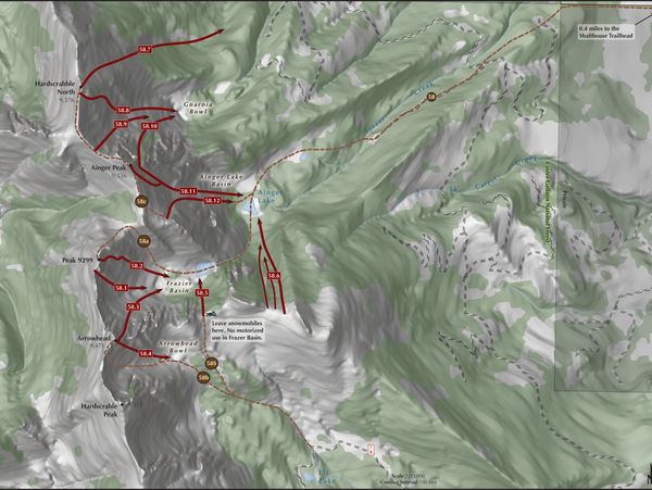 Each route has easy-to-follow maps. Understanding how to navigate complex private land inholdings, public land easements, and hard to reach winter trailheads is made simple with detail-rich maps for each ski-descent.